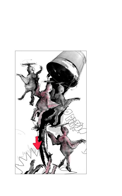 "Fregonas aviares" — Políptico formado por 20 piezas que se adaptan a las dimensiones de la sala. Presentado para la exposición "En el Cubo de mi madre" en la galería Paz y Comedias (Valencia).