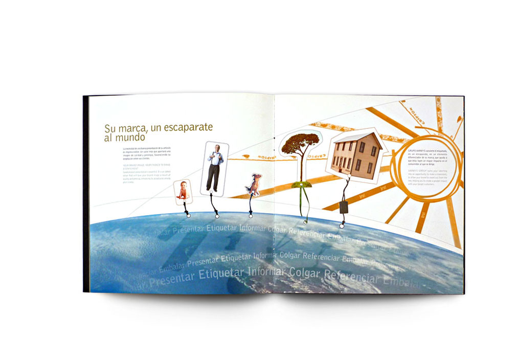 Catálogo corporativo — Concepto y Diseño. Empresa de diseño y producción de etiquetas, la imagen mostraba la necesidad de las marcas en un mundo necesariamente etiquetado.