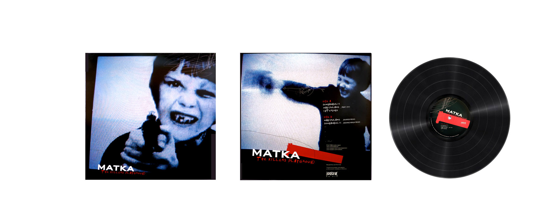 Diseño carátula y portada disco MATKA — Diseño e imagen realizados para el ep de vinilo "The Killers Playground" del músico MATKA, así como de la carátula de su DVD "Interzone".