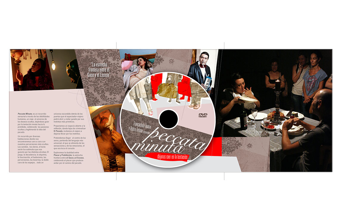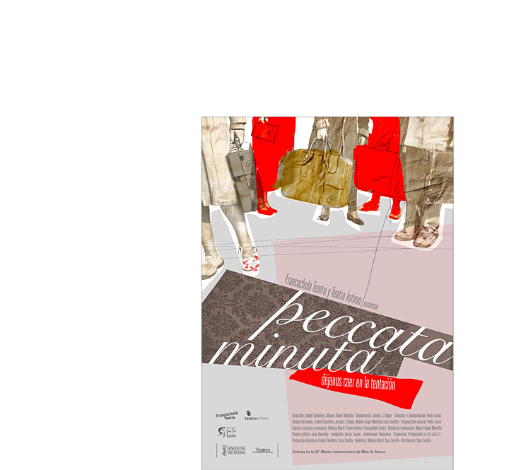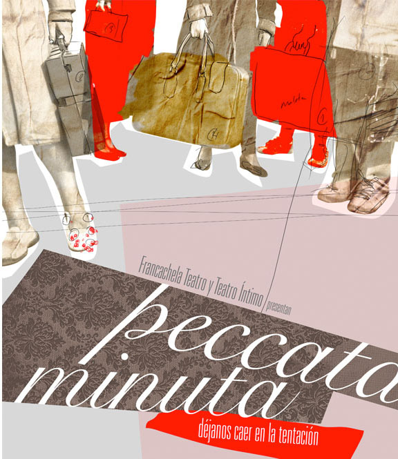 Imagen obra teatral "Peccata minuta" — Imagen y Diseño. Realización de la imagen cartelería, dossier de venta, así como de flyers y camisetas promocionales del espectáculo teatral.