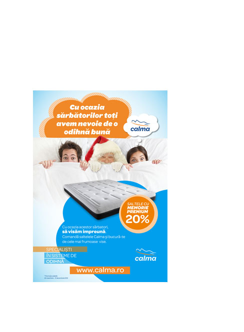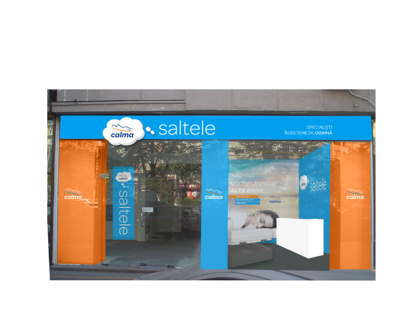 Identidad corporativa CALMA — restyling logotipo y diseño de la Identidad corporativa para las tiendas de la cadena rumana CALMA, de venta de colchones y almohadas