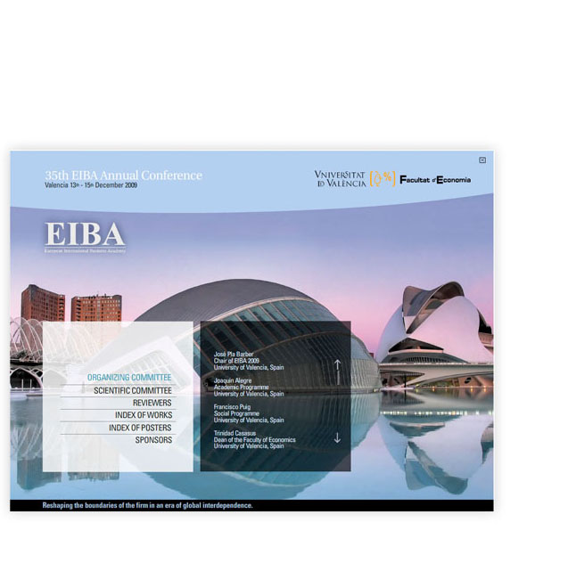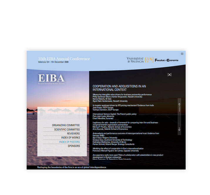 — Interactivo realizado para la Facultad de Economía, que recogía todas las ponencias para la 35 th EIBA Annual Conference.